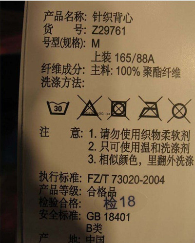 (4)清洗時不可使用漂白劑;