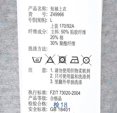 (4)清洗時不可使用漂白劑;