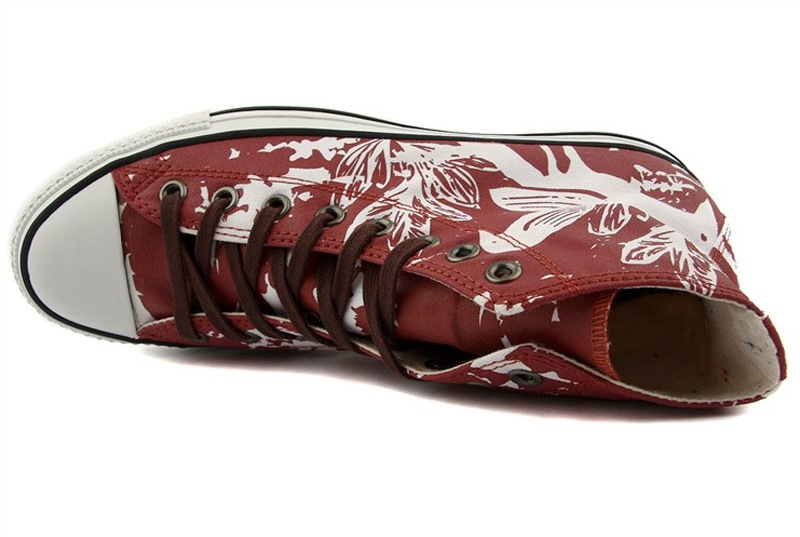 匡威Chuck Taylor朱紅色/白/巧克力色高幫綁帶帆布中性鞋