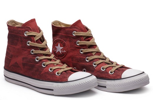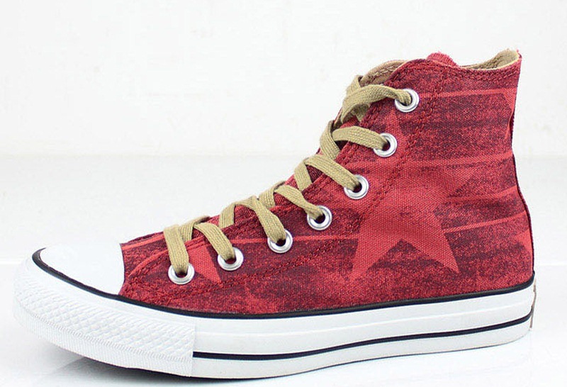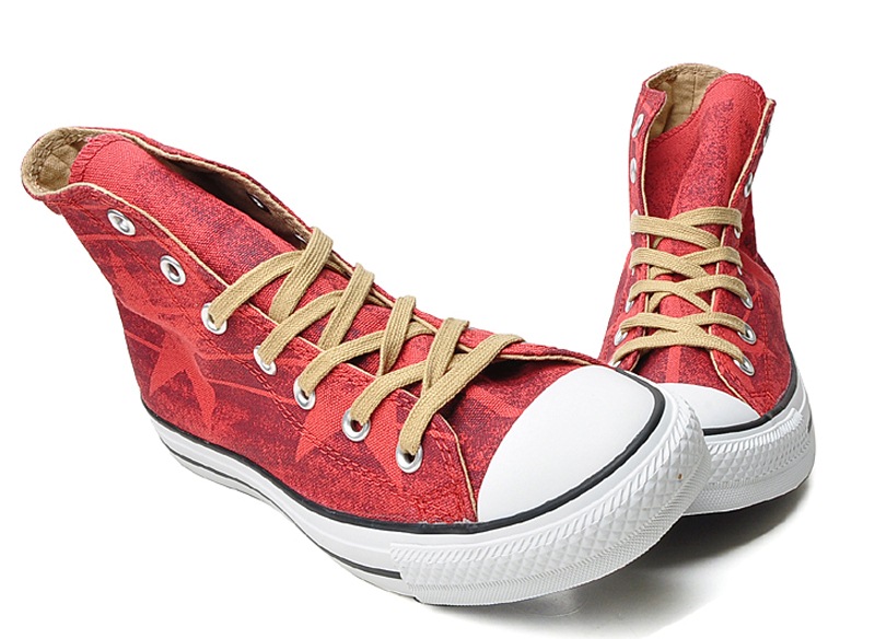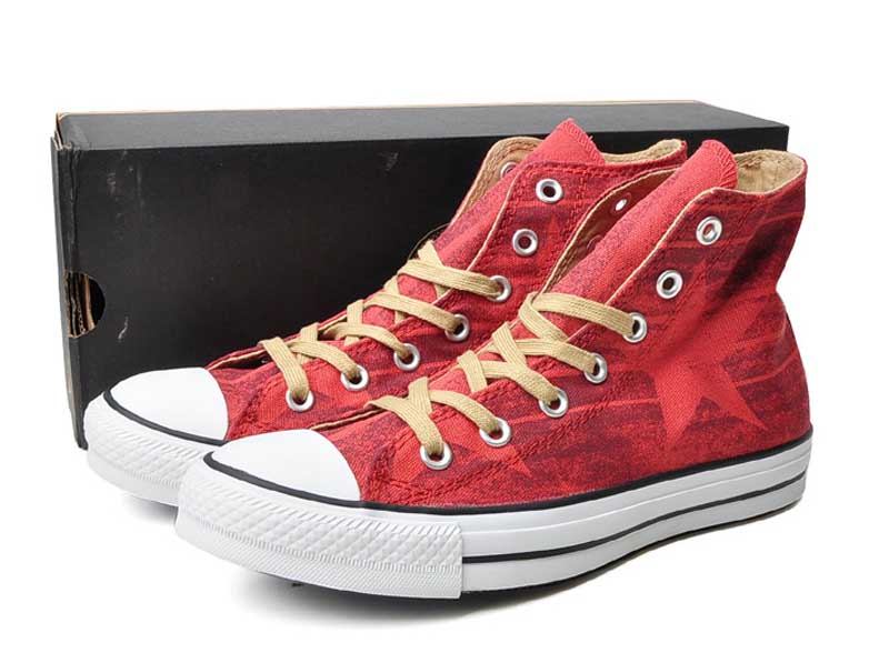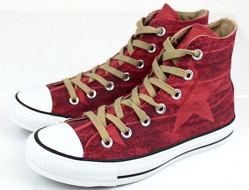 匡威Chuck Taylor朱紅色/巧克力色/米黃色高幫綁帶帆布中性鞋