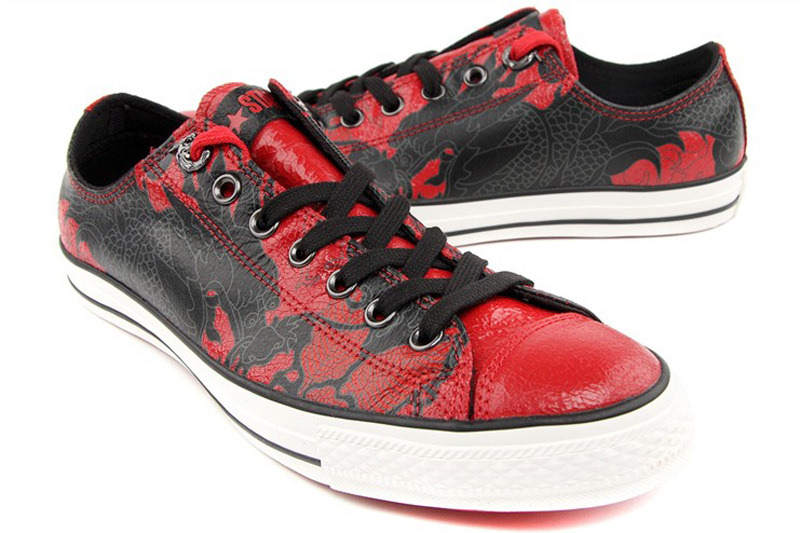 匡威129159x-CNY系列!CNY系列!紅黑色的裂紋牛皮,酷到難以形容。毫不夸張地說這款龜裂的效果使它更像藝術品。若隱若現的龍體在騰云駕霧,在講述關于中國的故事。