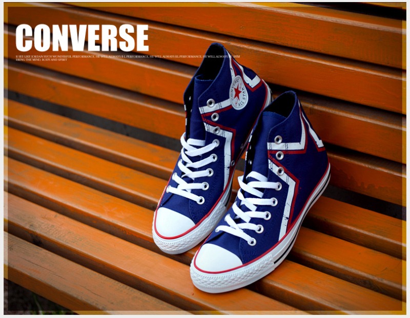 匡威ALL STAR藍/紅/白高幫綁帶帆布中性鞋