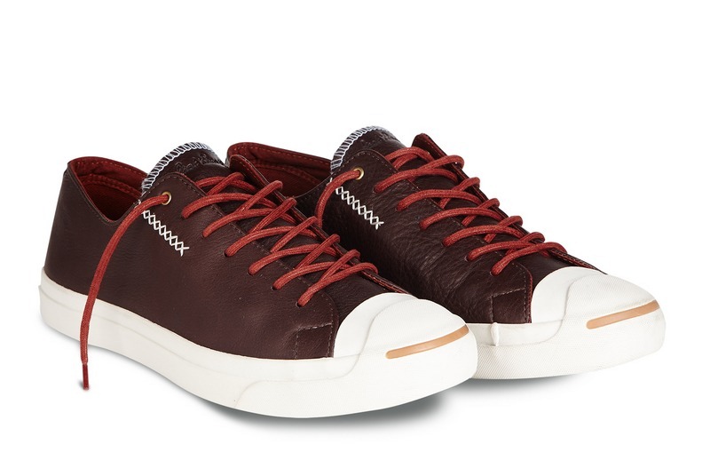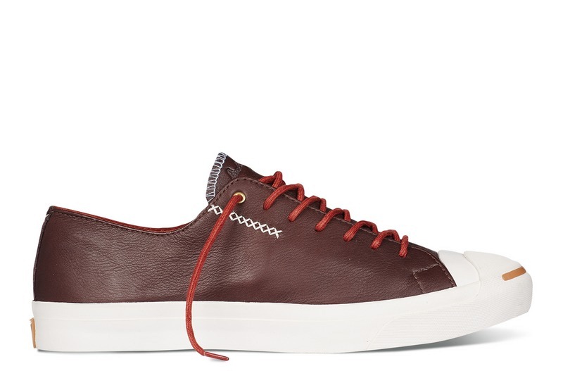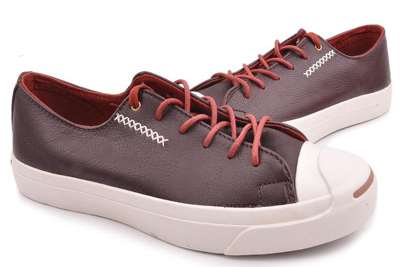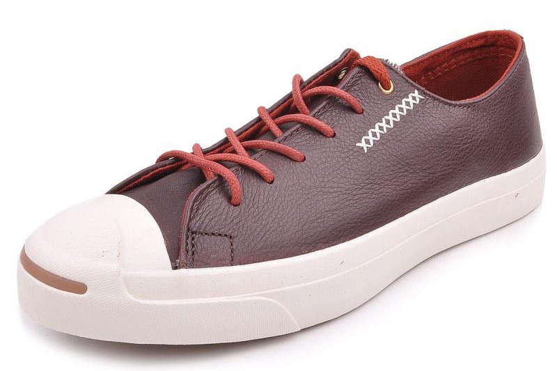匡威JACK PURCELL赤紅色低幫綁帶牛皮中性鞋