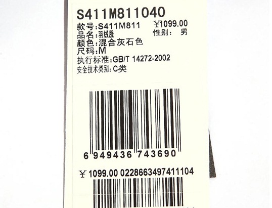 > 匡威男裝羽絨服S411M811040