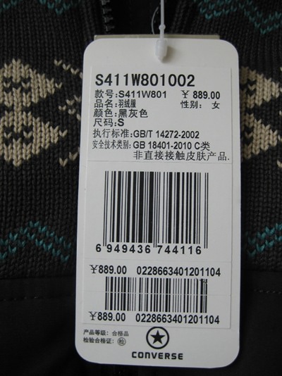 > 匡威羽絨服S411W801002